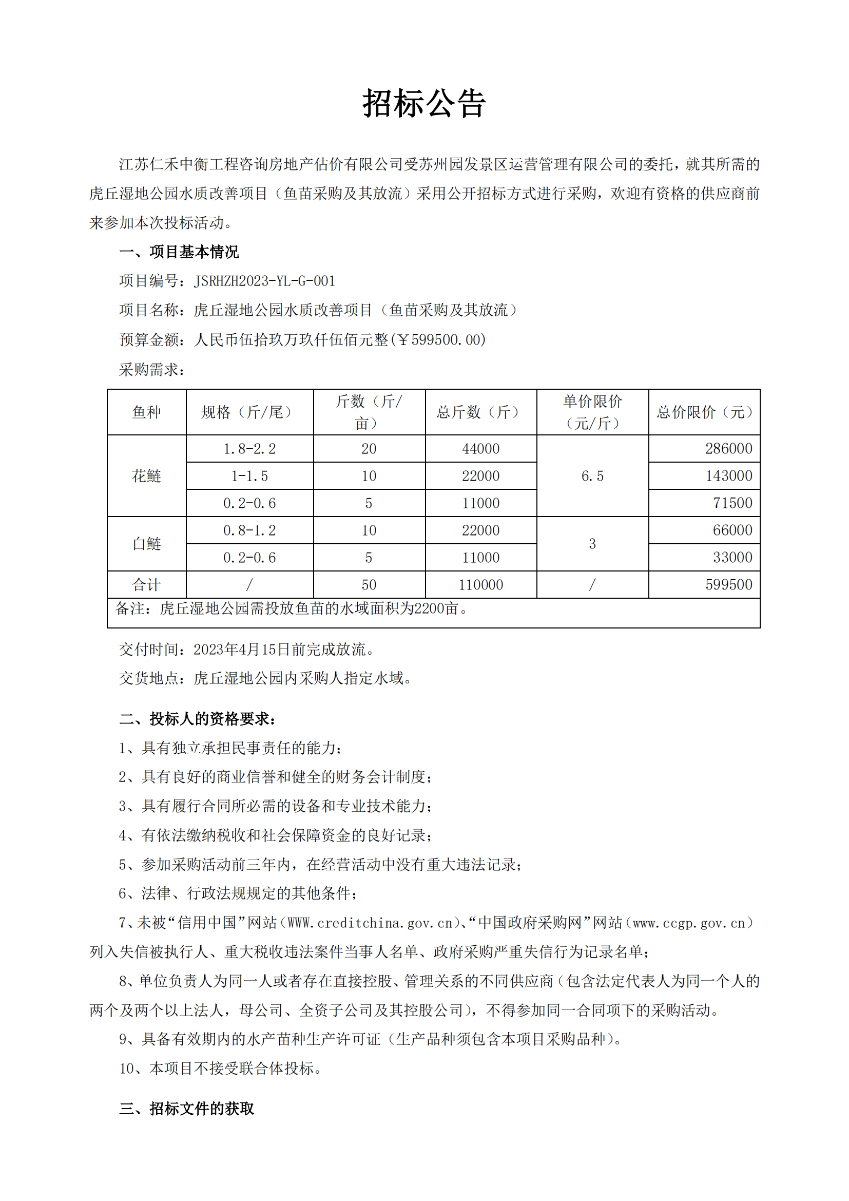 »¢ÇðʪµØ¹«Ô°Ë®ÖʸÄÉÆÏîÄ¿£¨ÓãÃç²É¹º¼°Æä·ÅÁ÷£©Õбêͨ¸æ